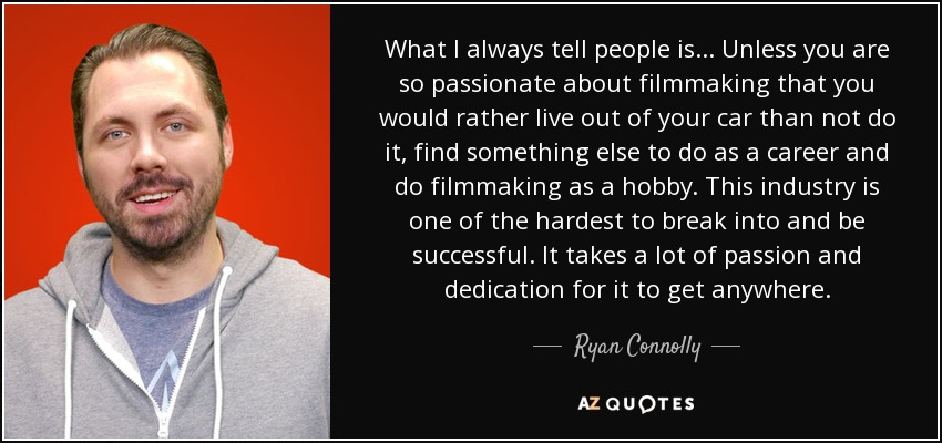 What I always tell people is... Unless you are so passionate about filmmaking that you would rather live out of your car than not do it, find something else to do as a career and do filmmaking as a hobby. This industry is one of the hardest to break into and be successful. It takes a lot of passion and dedication for it to get anywhere.