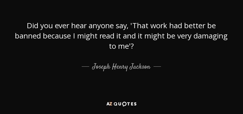 Did you ever hear anyone say, 'That work had better be banned because I might read it and it might be very damaging to me'?