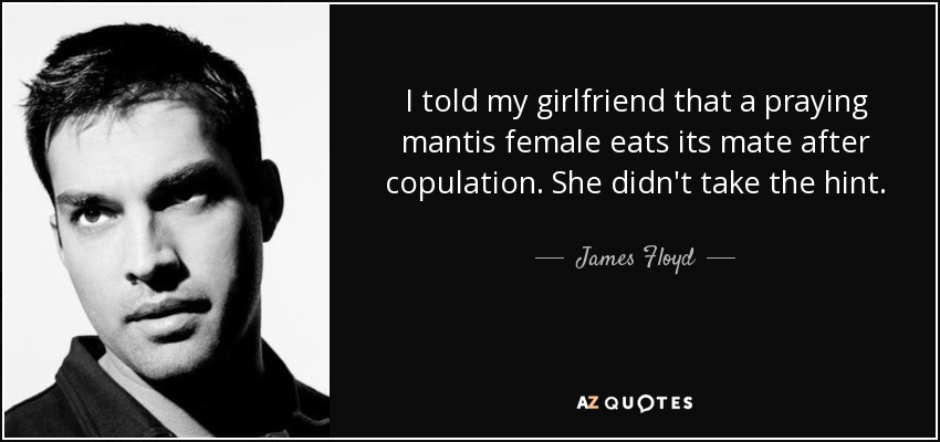 I told my girlfriend that a praying mantis female eats its mate after copulation. She didn't take the hint.