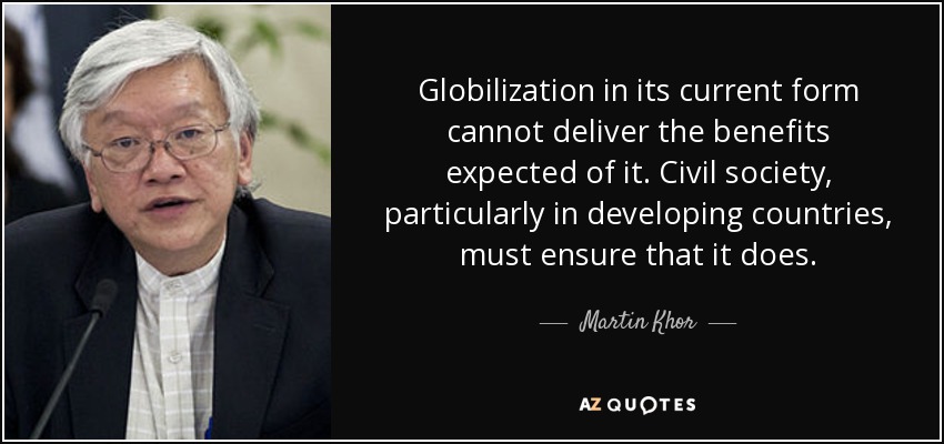 Globilization in its current form cannot deliver the benefits expected of it. Civil society, particularly in developing countries, must ensure that it does.