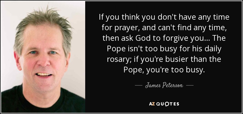 If you think you don't have any time for prayer, and can't find any time, then ask God to forgive you... The Pope isn't too busy for his daily rosary; if you're busier than the Pope, you're too busy.