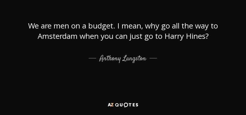 We are men on a budget. I mean, why go all the way to Amsterdam when you can just go to Harry Hines?