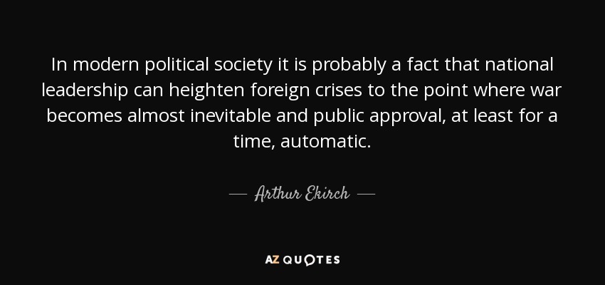 In modern political society it is probably a fact that national leadership can heighten foreign crises to the point where war becomes almost inevitable and public approval, at least for a time, automatic.