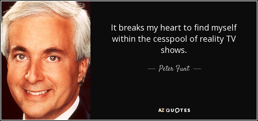 It breaks my heart to find myself within the cesspool of reality TV shows.