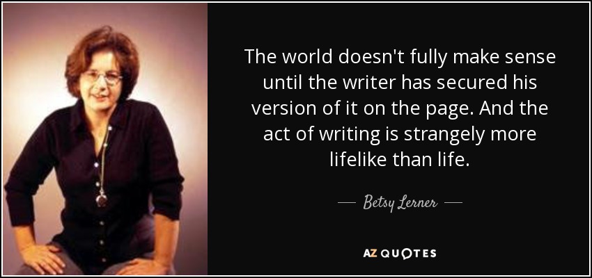 The world doesn't fully make sense until the writer has secured his version of it on the page. And the act of writing is strangely more lifelike than life.