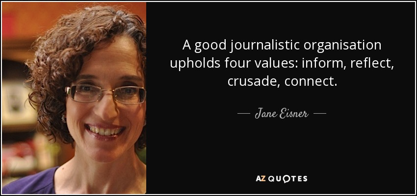 A good journalistic organisation upholds four values: inform, reflect, crusade, connect.