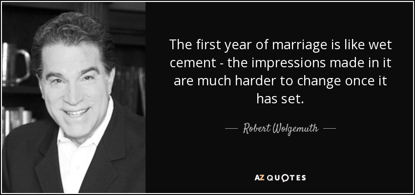 The first year of marriage is like wet cement - the impressions made in it are much harder to change once it has set.