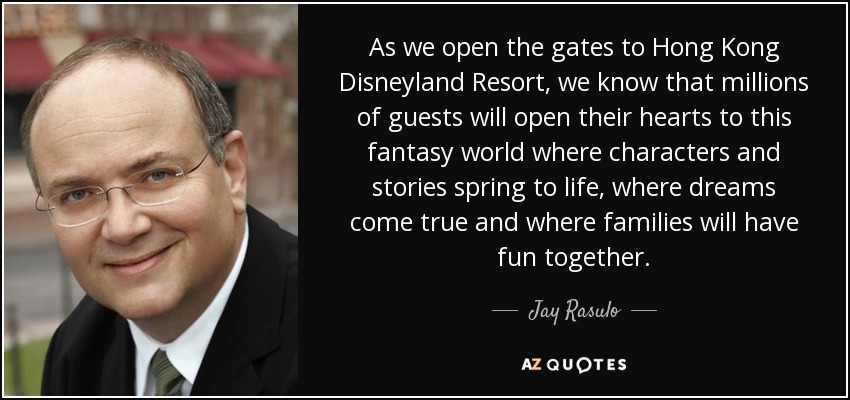As we open the gates to Hong Kong Disneyland Resort, we know that millions of guests will open their hearts to this fantasy world where characters and stories spring to life, where dreams come true and where families will have fun together.
