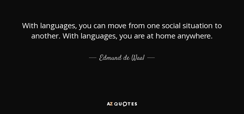 With languages, you can move from one social situation to another. With languages, you are at home anywhere.