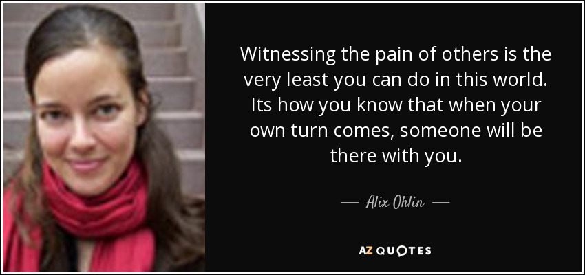 Witnessing the pain of others is the very least you can do in this world. Its how you know that when your own turn comes, someone will be there with you.