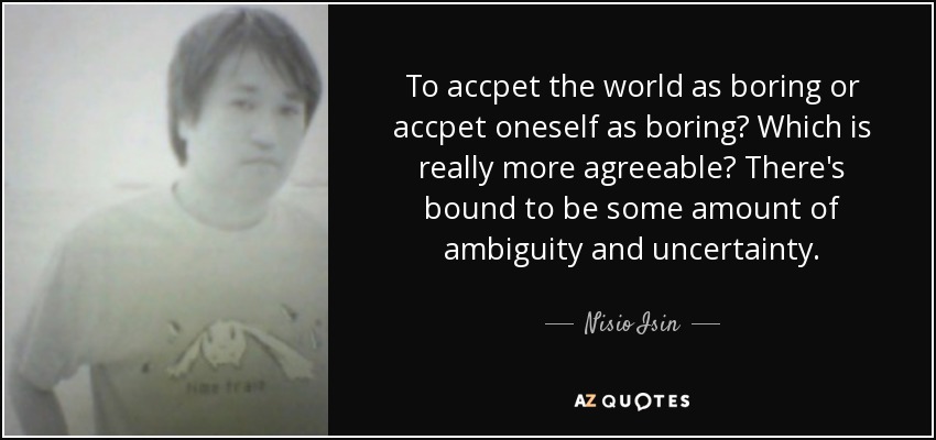 To accpet the world as boring or accpet oneself as boring? Which is really more agreeable? There's bound to be some amount of ambiguity and uncertainty.