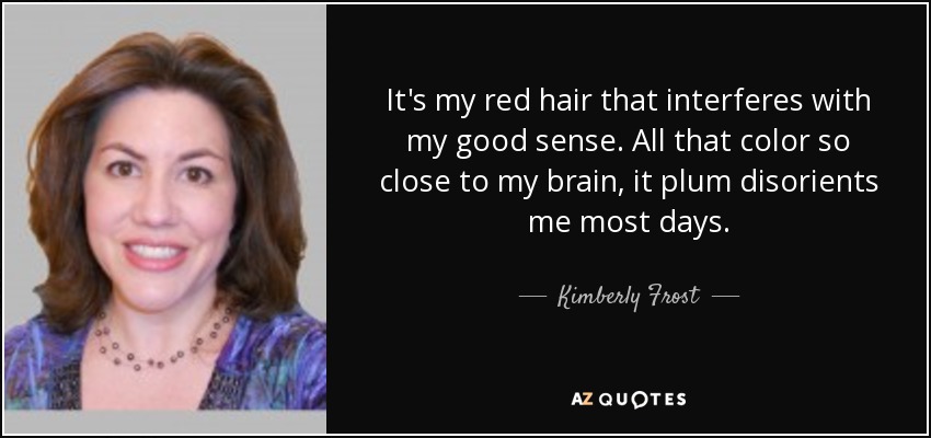 It's my red hair that interferes with my good sense. All that color so close to my brain, it plum disorients me most days.