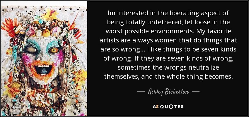 Im interested in the liberating aspect of being totally untethered, let loose in the worst possible environments. My favorite artists are always women that do things that are so wrong... I like things to be seven kinds of wrong. If they are seven kinds of wrong, sometimes the wrongs neutralize themselves, and the whole thing becomes.