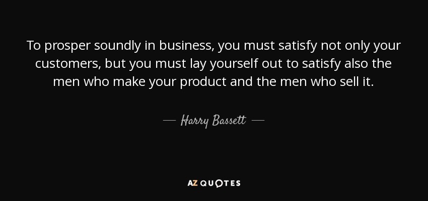 To prosper soundly in business, you must satisfy not only your customers, but you must lay yourself out to satisfy also the men who make your product and the men who sell it.