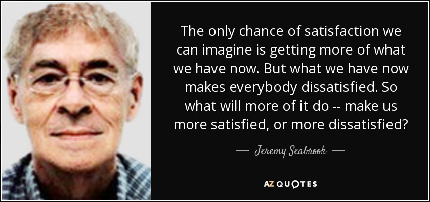 The only chance of satisfaction we can imagine is getting more of what we have now. But what we have now makes everybody dissatisfied. So what will more of it do -- make us more satisfied, or more dissatisfied?