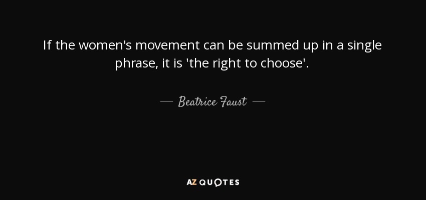 If the women's movement can be summed up in a single phrase, it is 'the right to choose'.
