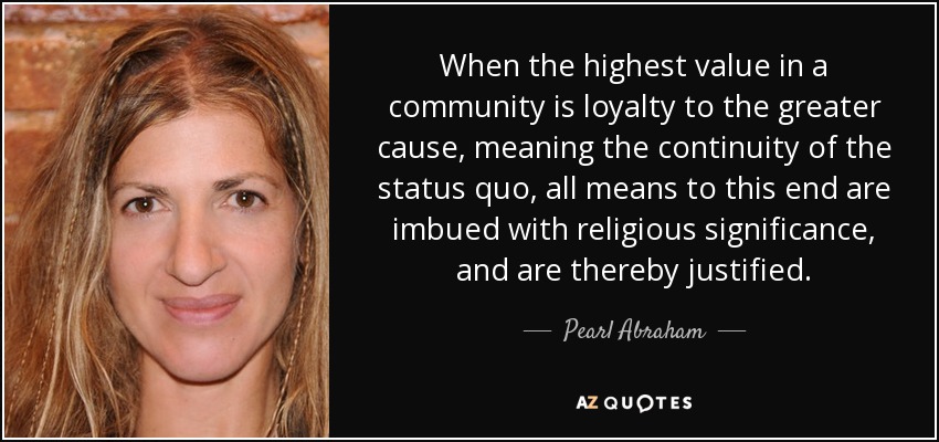 When the highest value in a community is loyalty to the greater cause, meaning the continuity of the status quo, all means to this end are imbued with religious significance, and are thereby justified.