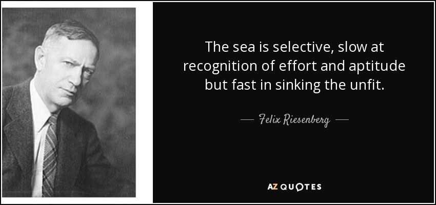 The sea is selective, slow at recognition of effort and aptitude but fast in sinking the unfit.