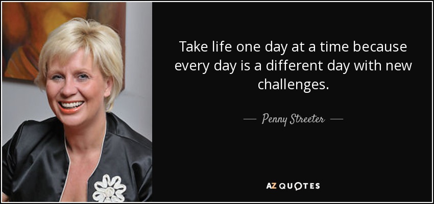 Take life one day at a time because every day is a different day with new challenges.