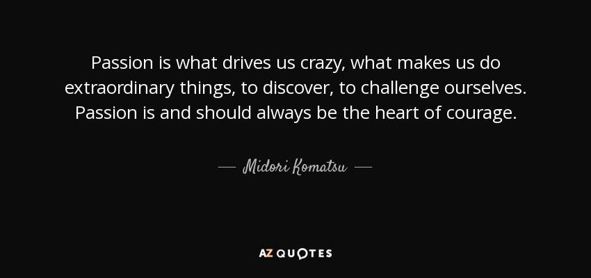 Passion is what drives us crazy, what makes us do extraordinary things, to discover, to challenge ourselves. Passion is and should always be the heart of courage.