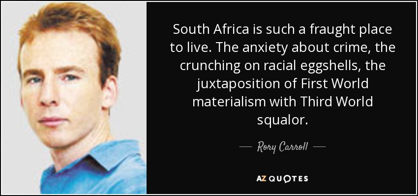 South Africa is such a fraught place to live. The anxiety about crime, the crunching on racial eggshells, the juxtaposition of First World materialism with Third World squalor.