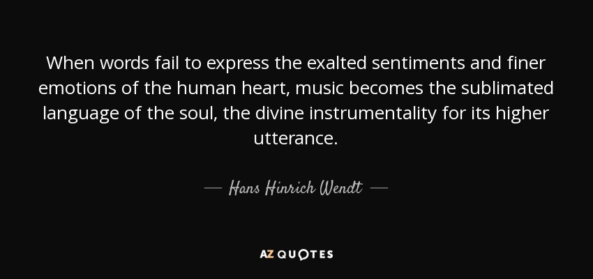 When words fail to express the exalted sentiments and finer emotions of the human heart, music becomes the sublimated language of the soul, the divine instrumentality for its higher utterance.