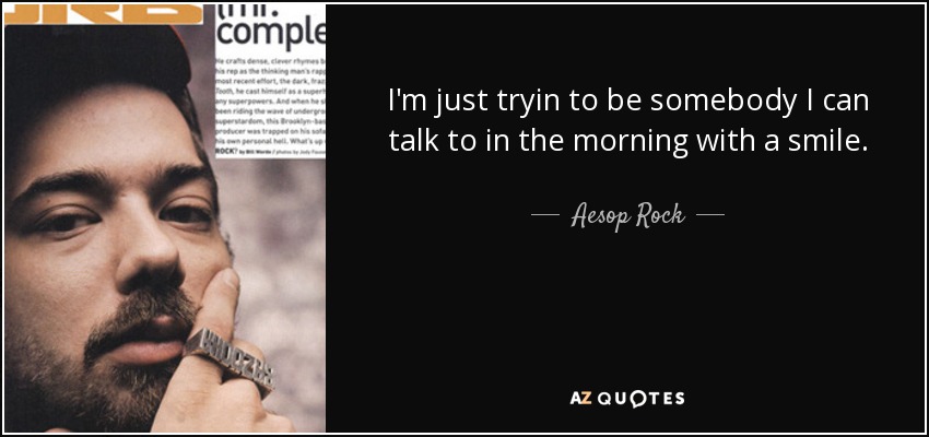 I'm just tryin to be somebody I can talk to in the morning with a smile.