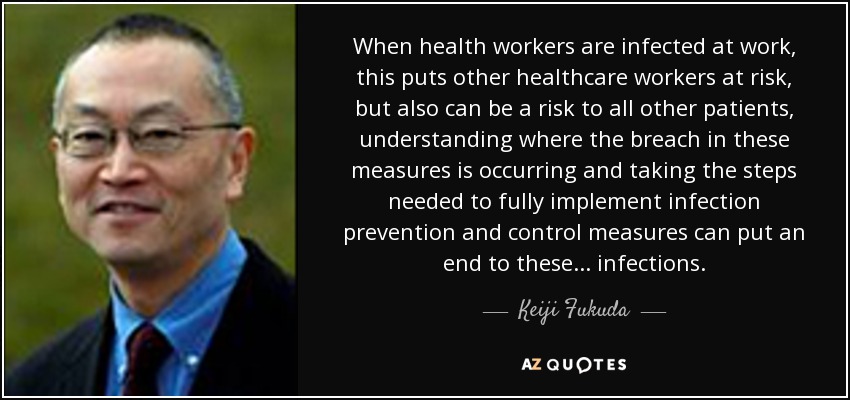 When health workers are infected at work, this puts other healthcare workers at risk, but also can be a risk to all other patients, understanding where the breach in these measures is occurring and taking the steps needed to fully implement infection prevention and control measures can put an end to these ... infections.