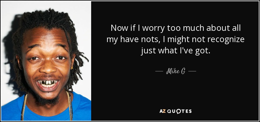Now if I worry too much about all my have nots, I might not recognize just what I've got.
