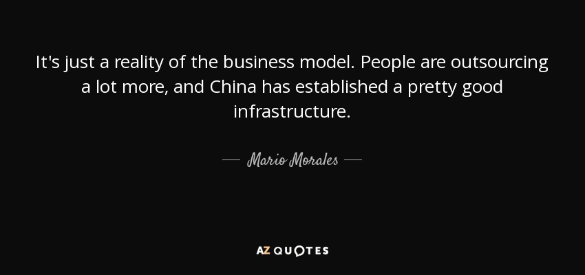 It's just a reality of the business model. People are outsourcing a lot more, and China has established a pretty good infrastructure.