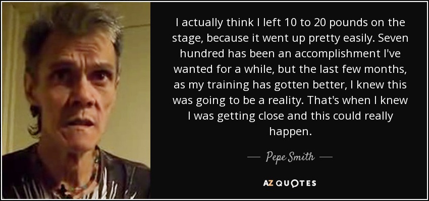 I actually think I left 10 to 20 pounds on the stage, because it went up pretty easily. Seven hundred has been an accomplishment I've wanted for a while, but the last few months, as my training has gotten better, I knew this was going to be a reality. That's when I knew I was getting close and this could really happen.