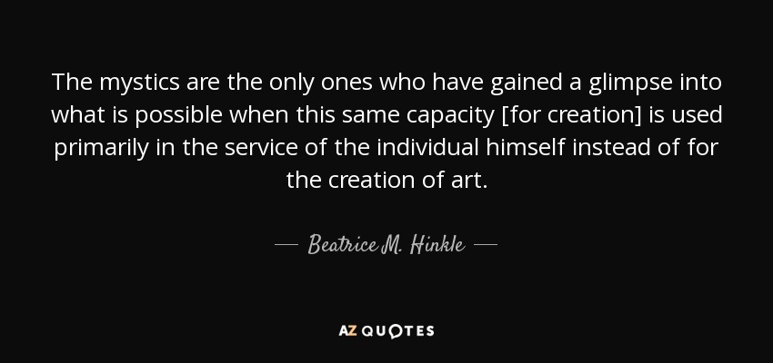 The mystics are the only ones who have gained a glimpse into what is possible when this same capacity [for creation] is used primarily in the service of the individual himself instead of for the creation of art.