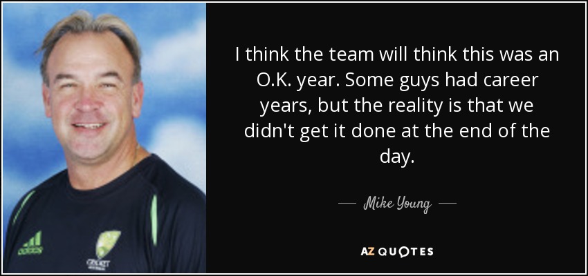 I think the team will think this was an O.K. year. Some guys had career years, but the reality is that we didn't get it done at the end of the day.