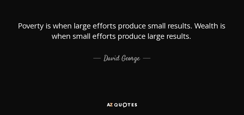 Poverty is when large efforts produce small results. Wealth is when small efforts produce large results.
