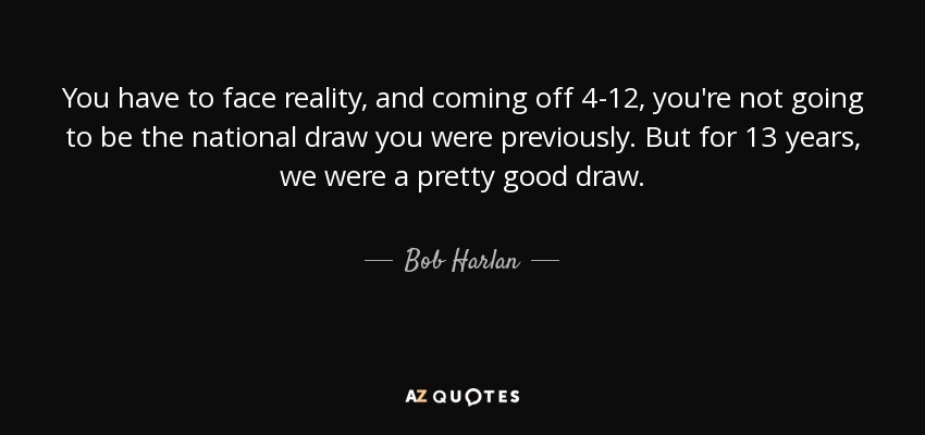 You have to face reality, and coming off 4-12, you're not going to be the national draw you were previously. But for 13 years, we were a pretty good draw.