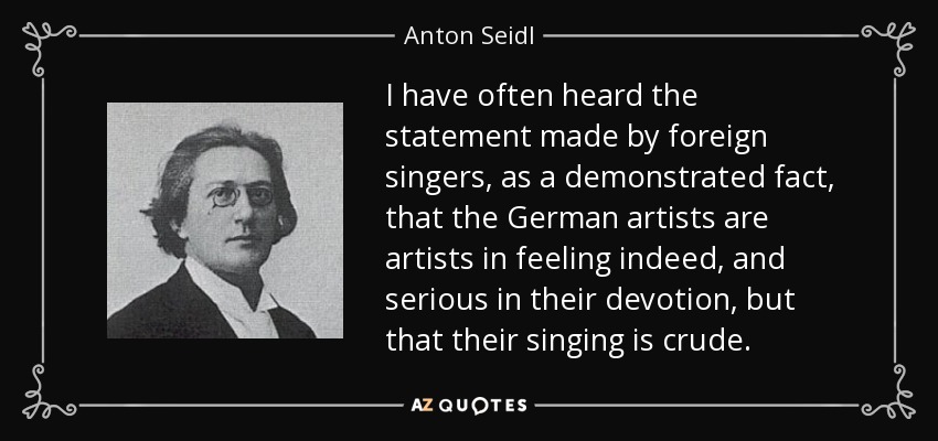 I have often heard the statement made by foreign singers, as a demonstrated fact, that the German artists are artists in feeling indeed, and serious in their devotion, but that their singing is crude.