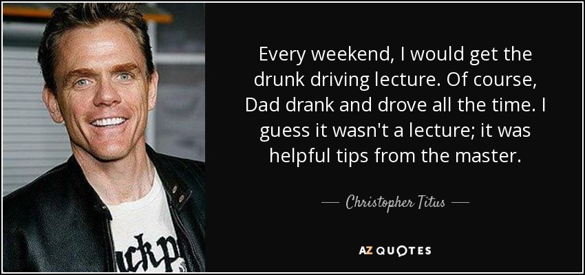 Every weekend, I would get the drunk driving lecture. Of course, Dad drank and drove all the time. I guess it wasn't a lecture; it was helpful tips from the master.