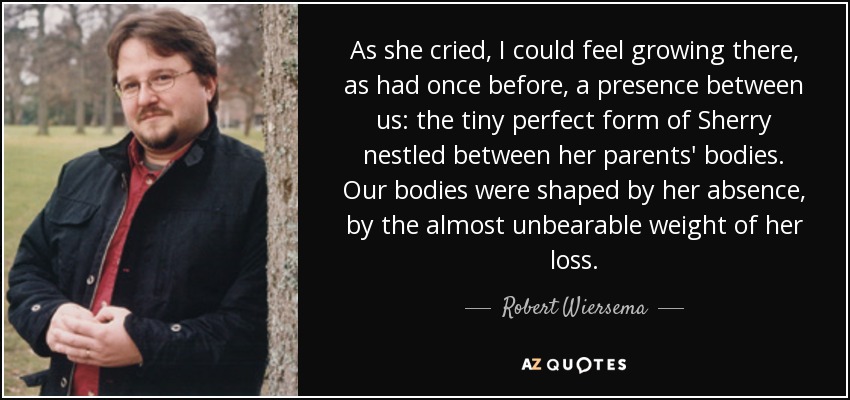 As she cried, I could feel growing there, as had once before, a presence between us: the tiny perfect form of Sherry nestled between her parents' bodies. Our bodies were shaped by her absence, by the almost unbearable weight of her loss.