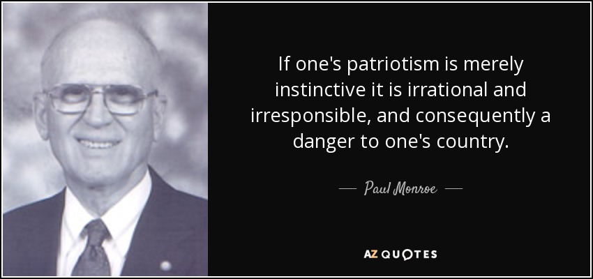 If one's patriotism is merely instinctive it is irrational and irresponsible, and consequently a danger to one's country.