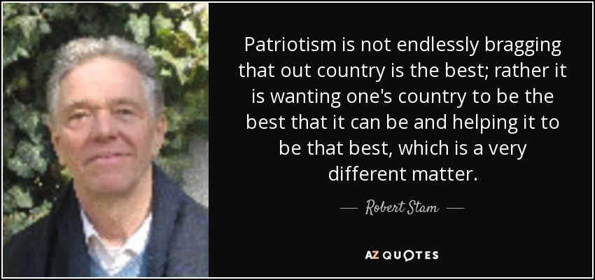 Patriotism is not endlessly bragging that out country is the best; rather it is wanting one's country to be the best that it can be and helping it to be that best, which is a very different matter.