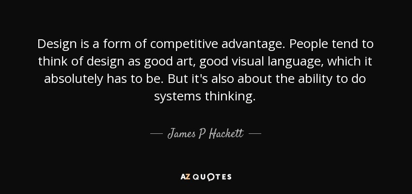 Design is a form of competitive advantage. People tend to think of design as good art, good visual language, which it absolutely has to be. But it's also about the ability to do systems thinking.