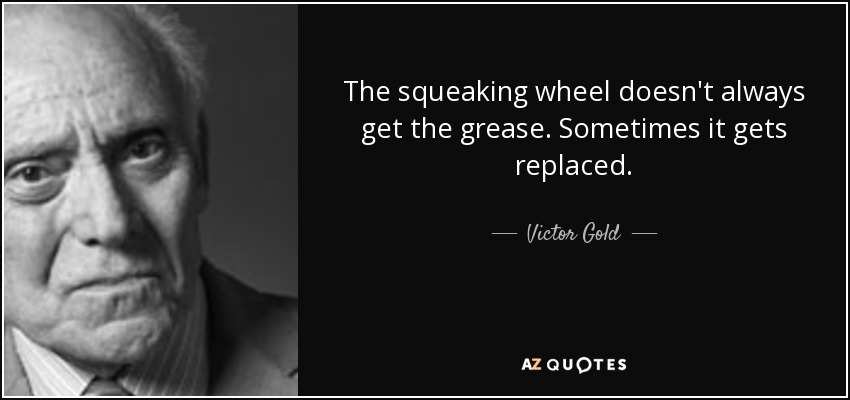 The squeaking wheel doesn't always get the grease. Sometimes it gets replaced.