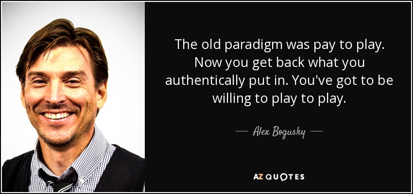 The old paradigm was pay to play. Now you get back what you authentically put in. You've got to be willing to play to play.