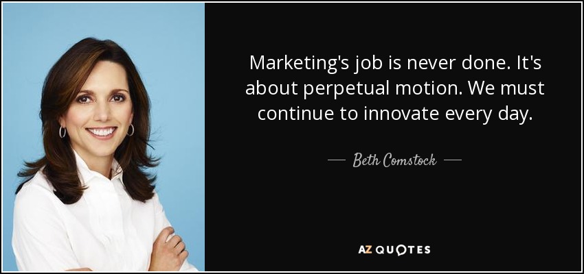 Marketing's job is never done. It's about perpetual motion. We must continue to innovate every day.