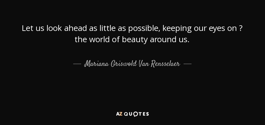 Let us look ahead as little as possible, keeping our eyes on the world of beauty around us.