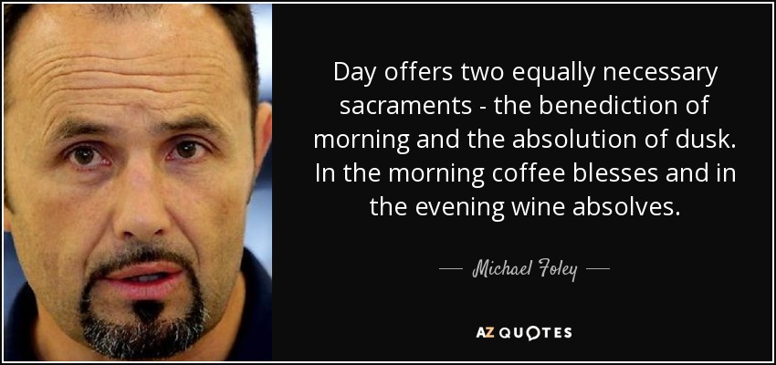 Day offers two equally necessary sacraments - the benediction of morning and the absolution of dusk. In the morning coffee blesses and in the evening wine absolves.