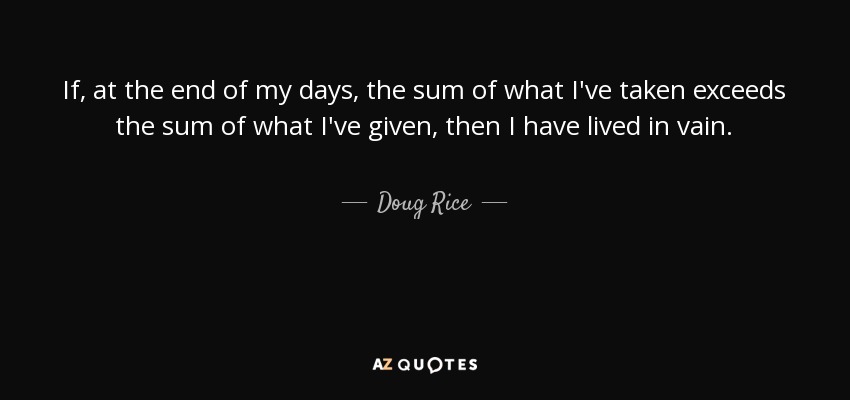 If, at the end of my days, the sum of what I've taken exceeds the sum of what I've given, then I have lived in vain.