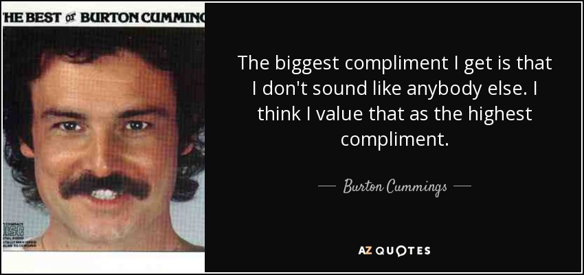 The biggest compliment I get is that I don't sound like anybody else. I think I value that as the highest compliment.