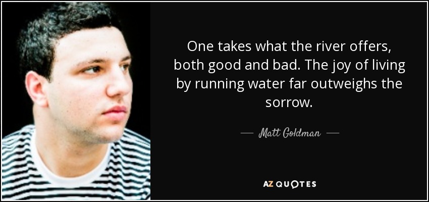 One takes what the river offers, both good and bad. The joy of living by running water far outweighs the sorrow.