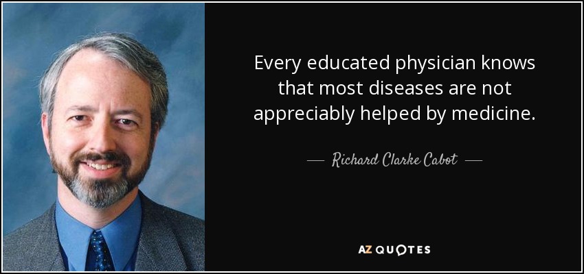 Every educated physician knows that most diseases are not appreciably helped by medicine.